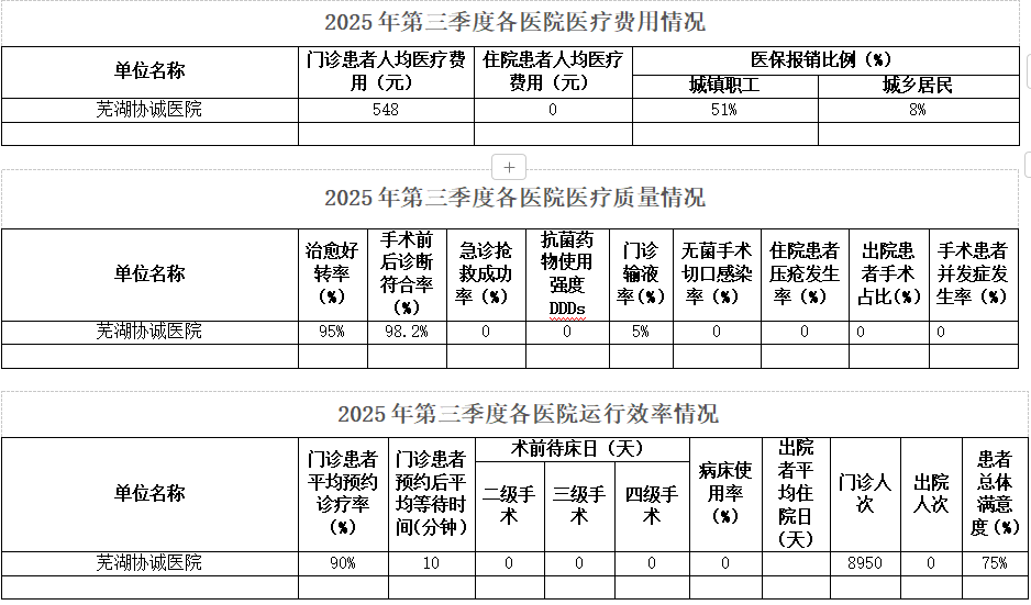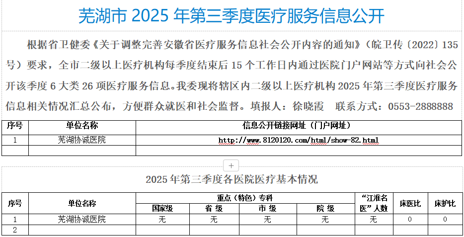 芜湖市2025年第三季度医疗服务信息公开_医院公告_芜湖协诚医院